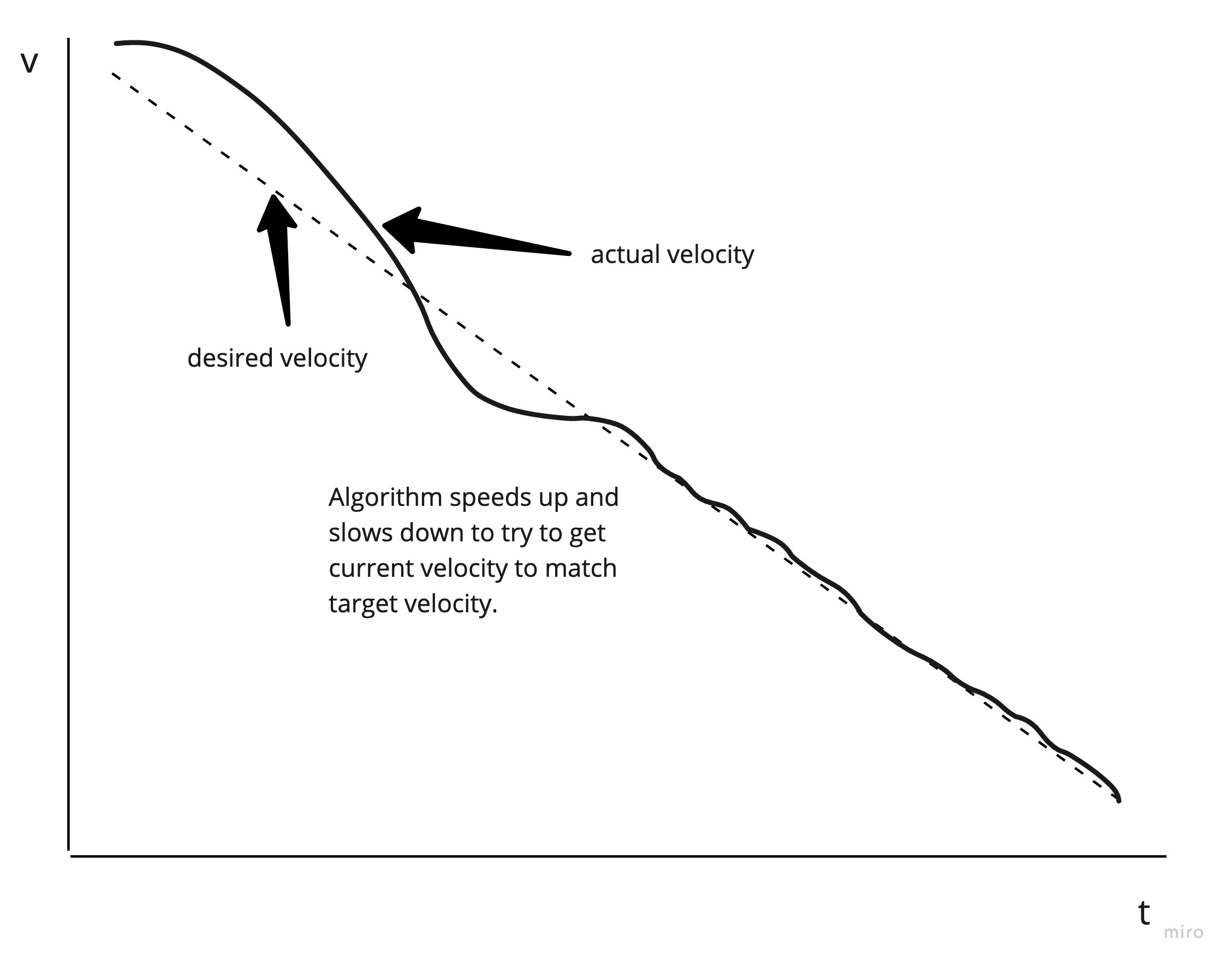 The first diagram (top) showcases how the slow down algorithm works. The second shows how we calculate our desired speed using the plane’s acceleration. We essentially continually throttle the plane up and down to maintain a desired speed until we reach 13 m/s. After which we use our pitch up maneuver.